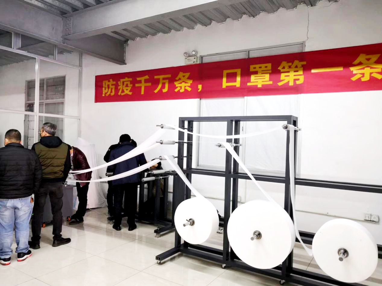 喜訊!佰源公司搭設(shè)完成自主研發(fā)的口罩生產(chǎn)機(jī)